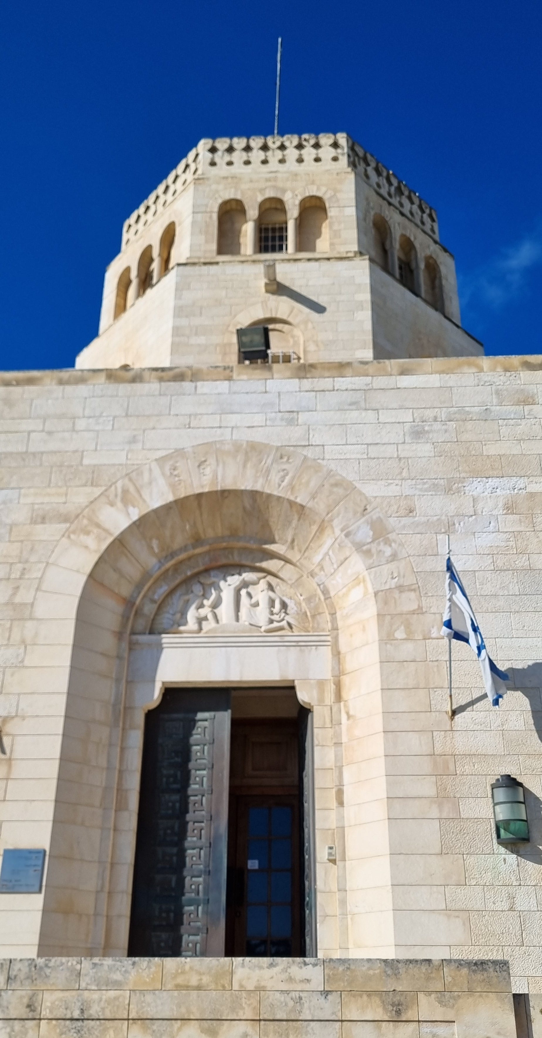 An Israeli flag flies over the entrance to the Rockefeller Museum, which was opened by the British in 1938. Credit: Ben Bresky, 2026